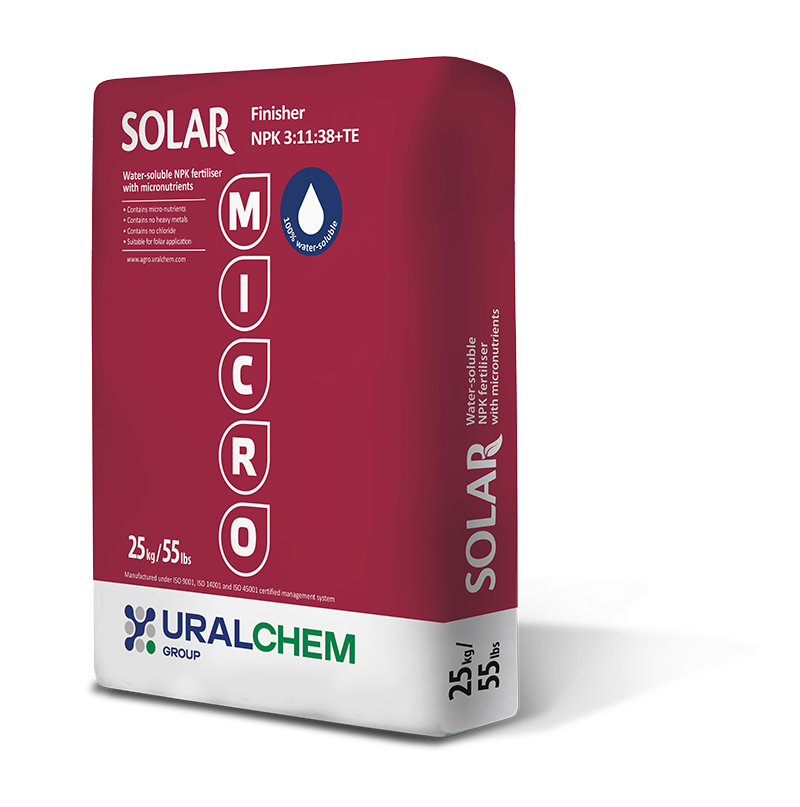Büyümenin son evrelerinde ürünler eşit oranda sürgün ve yoğun meyvelenmeyi destekler, zirai ürünlerin tadını, görünümünü ve saklanabilirliğini iyileştirir. Örneğin Şeker pancarı köklerinde bulunan şeker içeriği gibi kalite parametrelerini arttırır ve bitkiyi kuraklık şartlarına direnç göstermesi için uyarır. Her türlü mahsul için uygulamaya elverişlidir. Açık tarla mahsullerinde olduğu gibi fertigasyon sistemleri ve seralarda da yaprak uygulaması için idealdir. Her formülasyon, boron ve molibdenum dışında yüksek derecede etkili şelatlı biçimde (EDTA) mikro elementleri barındırır.